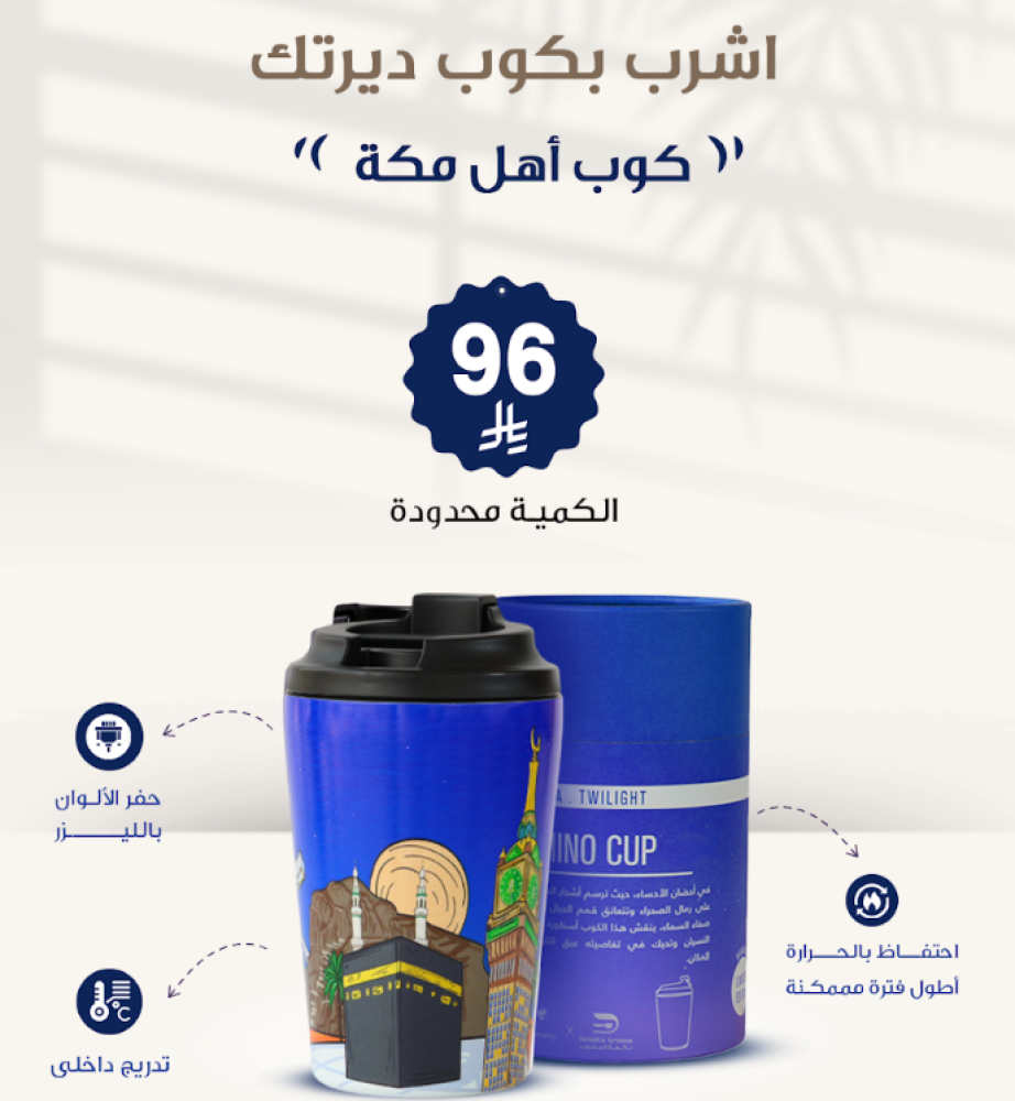 استمتع بمشروبك المفضل أينما كنت مع أكواب حرارية أنيقة تحمل أسماء مدن المملكة، مستوحاة من أبرز معالمها الأثرية لتضيف لمسة مميزة لكل رشفة.